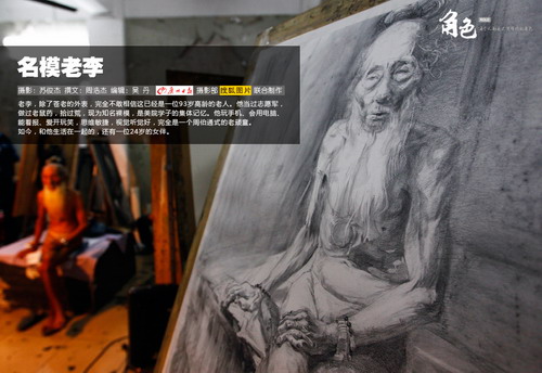 老李,除了苍老的外表,完全不敢相信这已经是一位93岁高龄的老人。他当过志愿军,做过老鼠药,拾过荒,现为知名裸模,是美院学子的集体记忆。他玩手机、会用电脑、能看报、爱开玩笑,思维敏捷,视觉听觉好,完全是一个周伯通式的老顽童。如今,和他生活在一起的,还有一位24岁的女友。