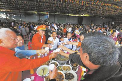 在重阳节感恩活动后老人们在一起聚餐